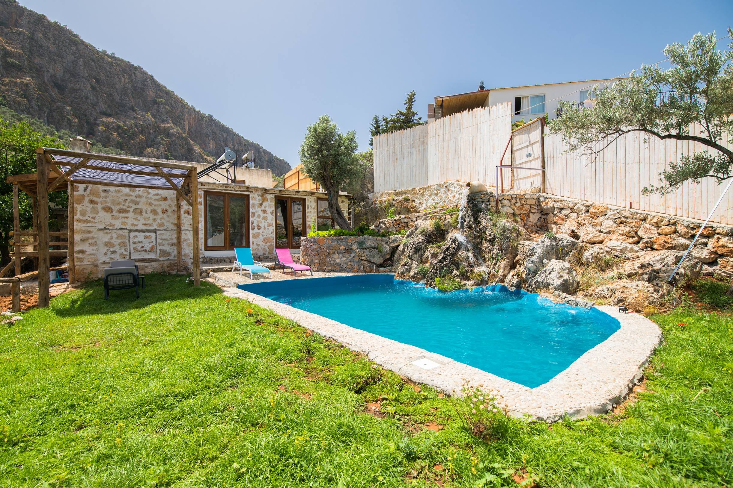 Private pool ( length: 3.50 m, width: 8.00 m, depth: 1.50 m), sun beds, beach umbrella, shower, seating groups, table and chair