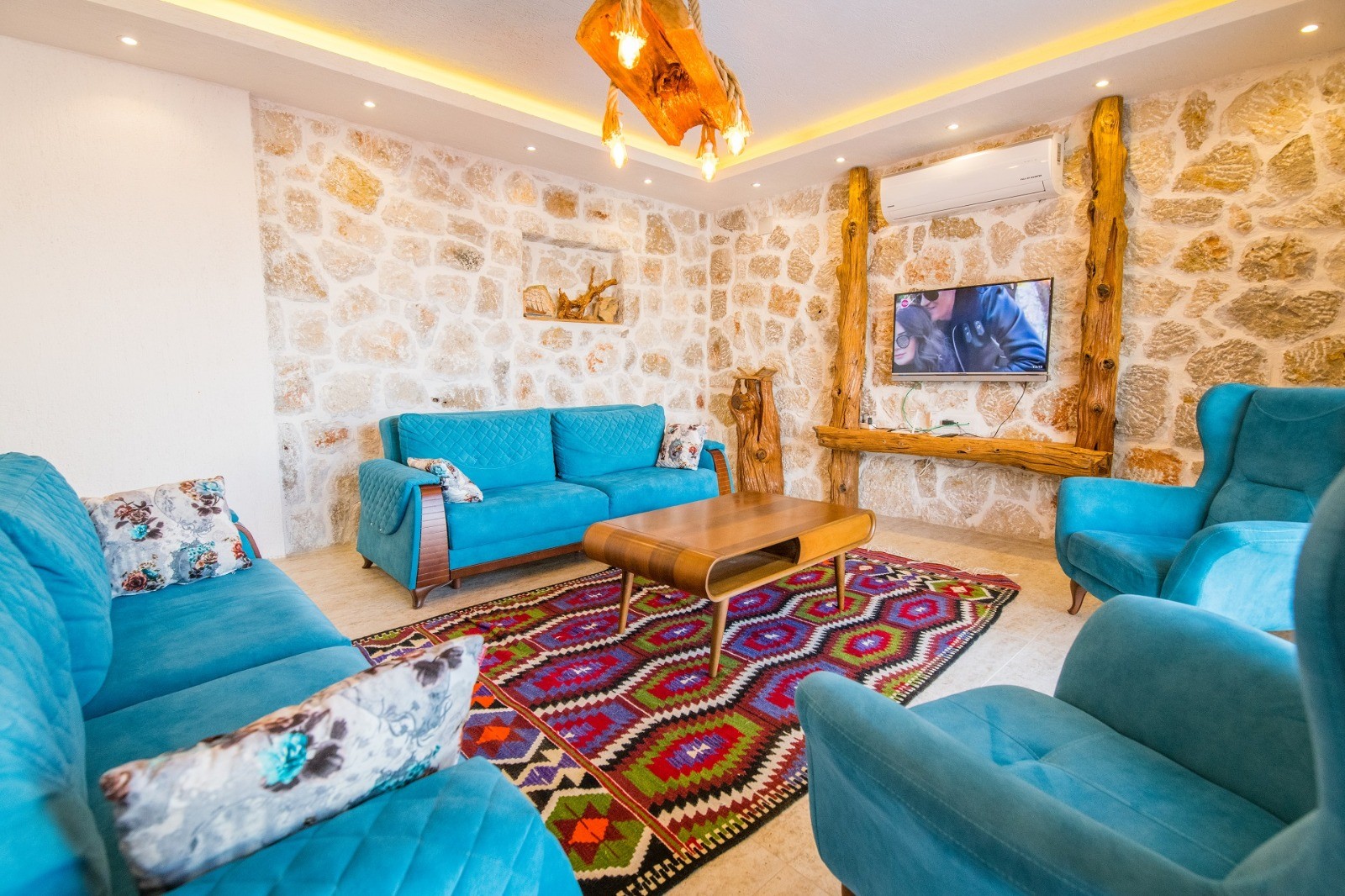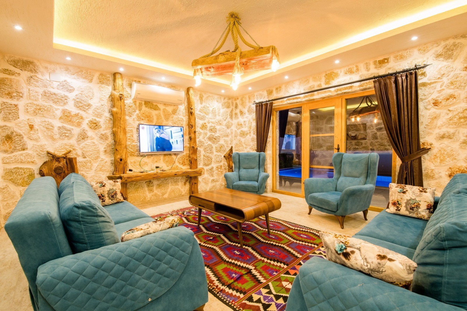 Our luxury Villa Jet located in Patara 20 km to Kalkan has 4 guest capacity with 2 bedrooms. The living area is furnished with contemporary elements with American style kitchen. Our luxury villa is built by adoptation of modern architecture understanding; and items of quality were used in the interior design.