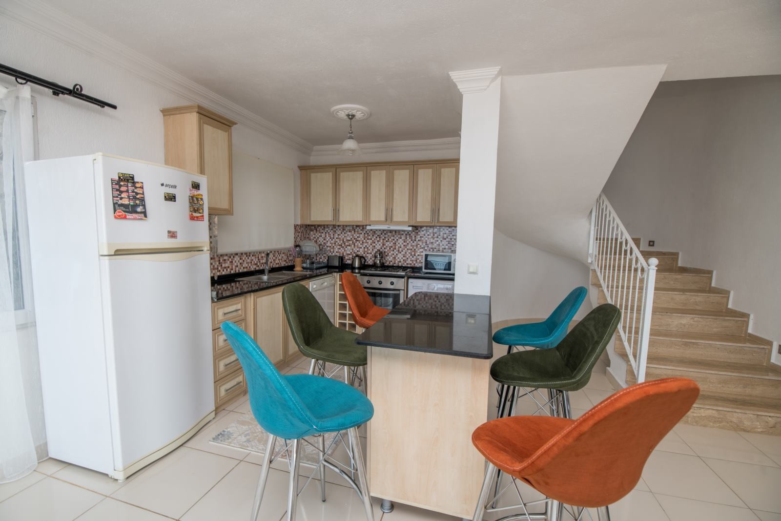 Living area: Well-equipped and modern design American style kitchen&saloon which opening to the swimming pool.