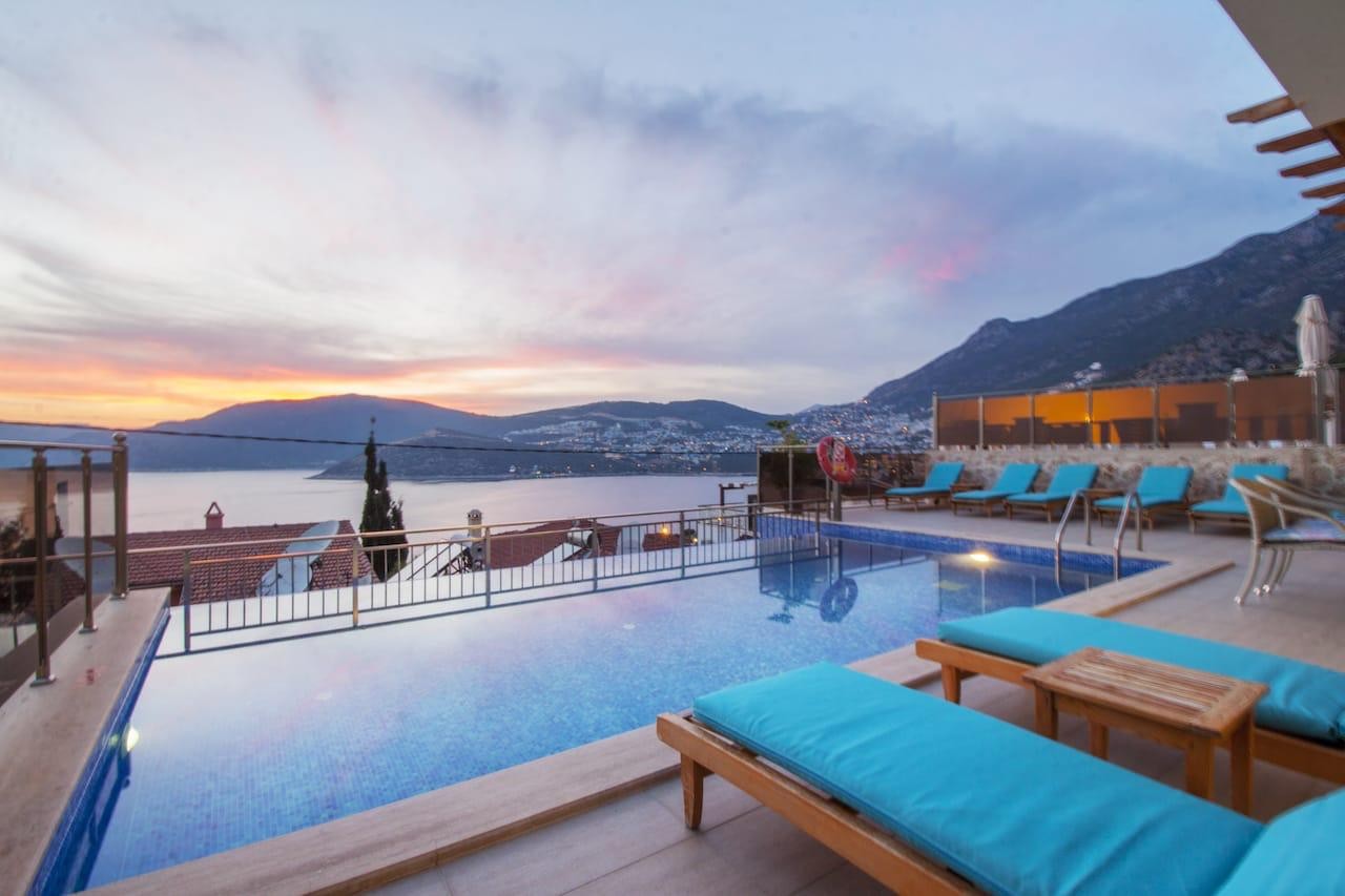Our luxury Villa Sezen located in Kısla Area in Kalkan has 8 guest capacity with 4 bedrooms, one of them with jacuzzi. The living area is furnished with contemporary elements with American style kitchen. Our luxury villa is built by adoptation of modern architecture understanding; and items of quality were used in the interior design.